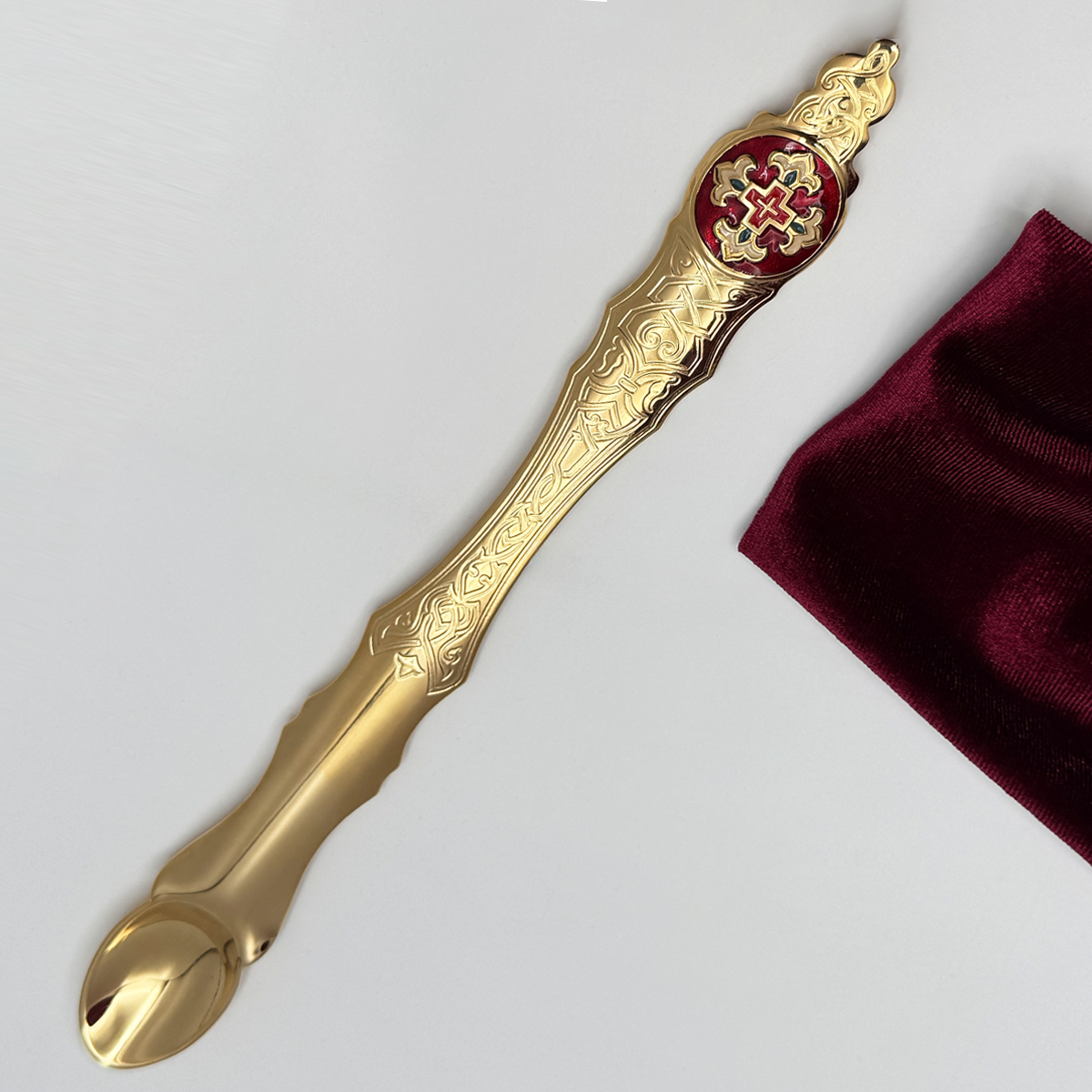 Представляем вашему вниманию евхаристический набор, выполненный в сочетании серебра, позолоты и высококачественного ювелирного сплава. Изделия изготовлены с любовью и благоговением для святого таинства Причастия. Данный набор является истинным произведением искусства, где каждый элемент пропитан глубоким символизмом и духовной значимостью. Все элементы покрыты позолотой, которая нежно блестит, отражая свет. Изделия декорированы эмалью и образами написанными на перламутре.
