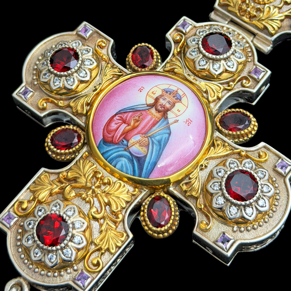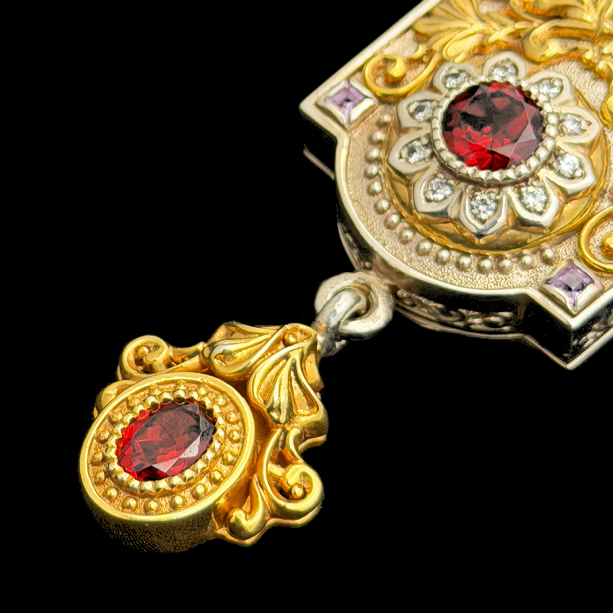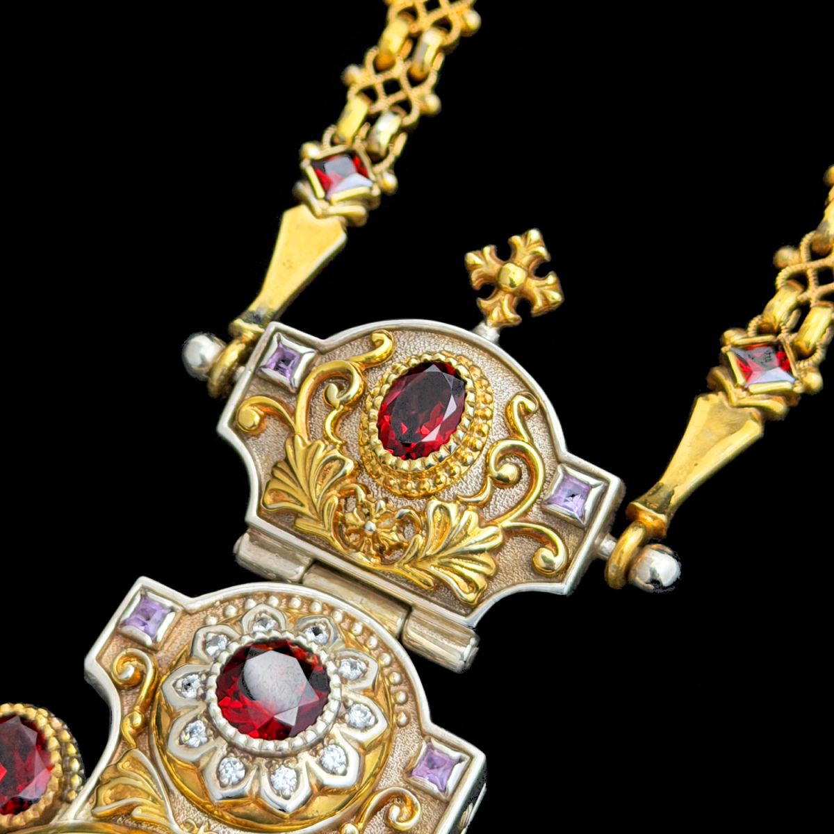 | Вставки | Финифть, гранат, аметист, фианит | |