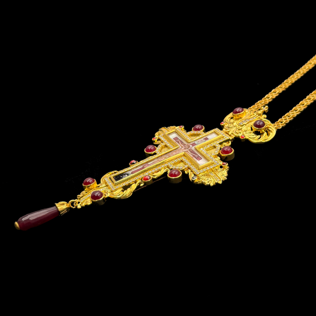 | Вставки | Иконопись на перламутре, халцедон красный, фианит | |