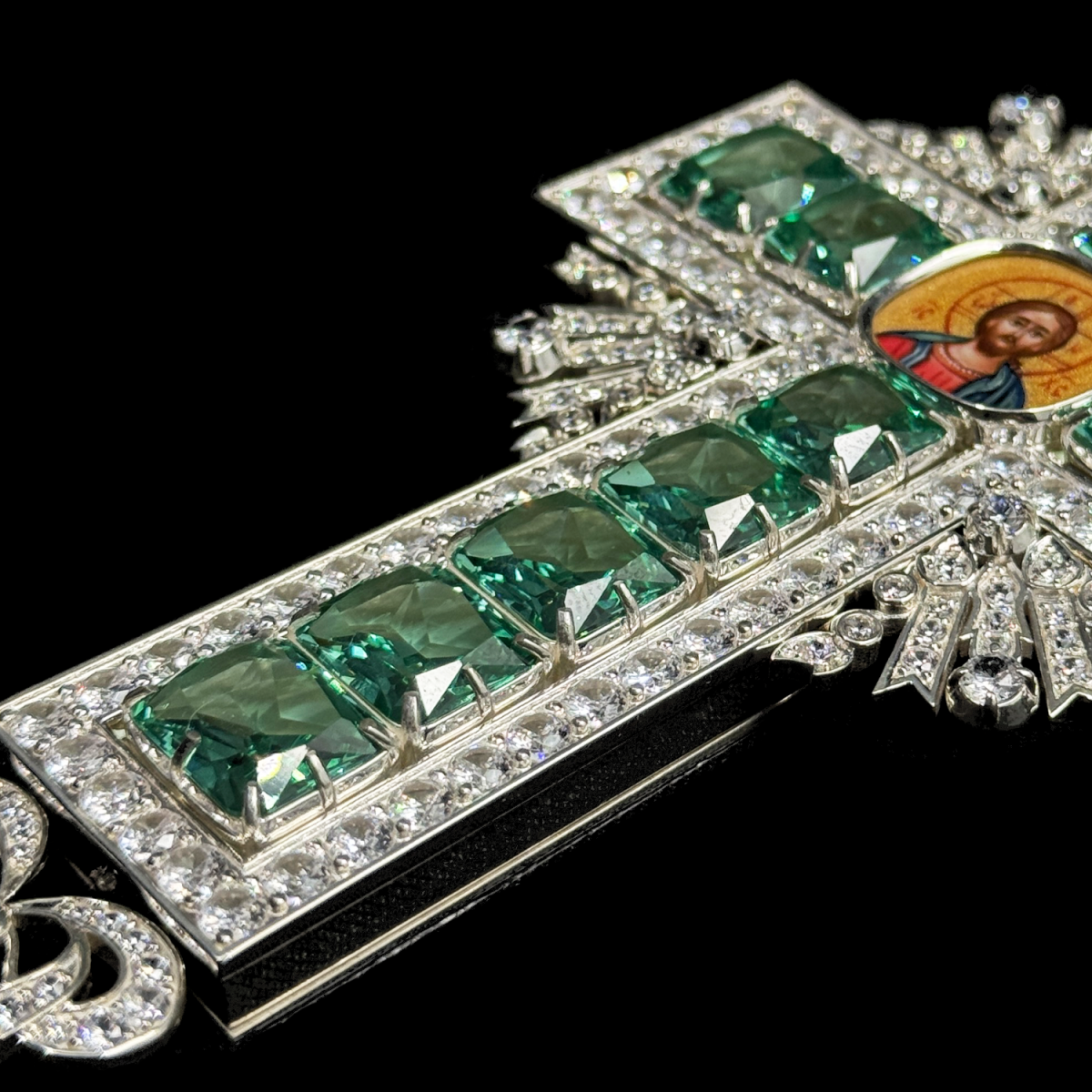 Иконопись на перламутре, ювелирный кристалл, фианиты |