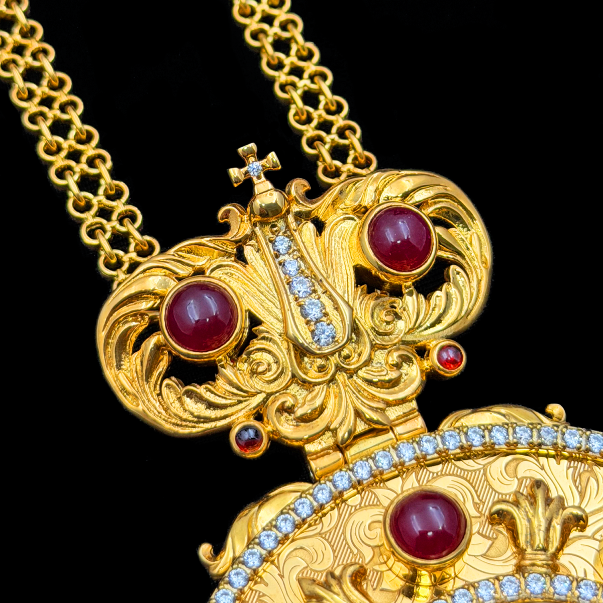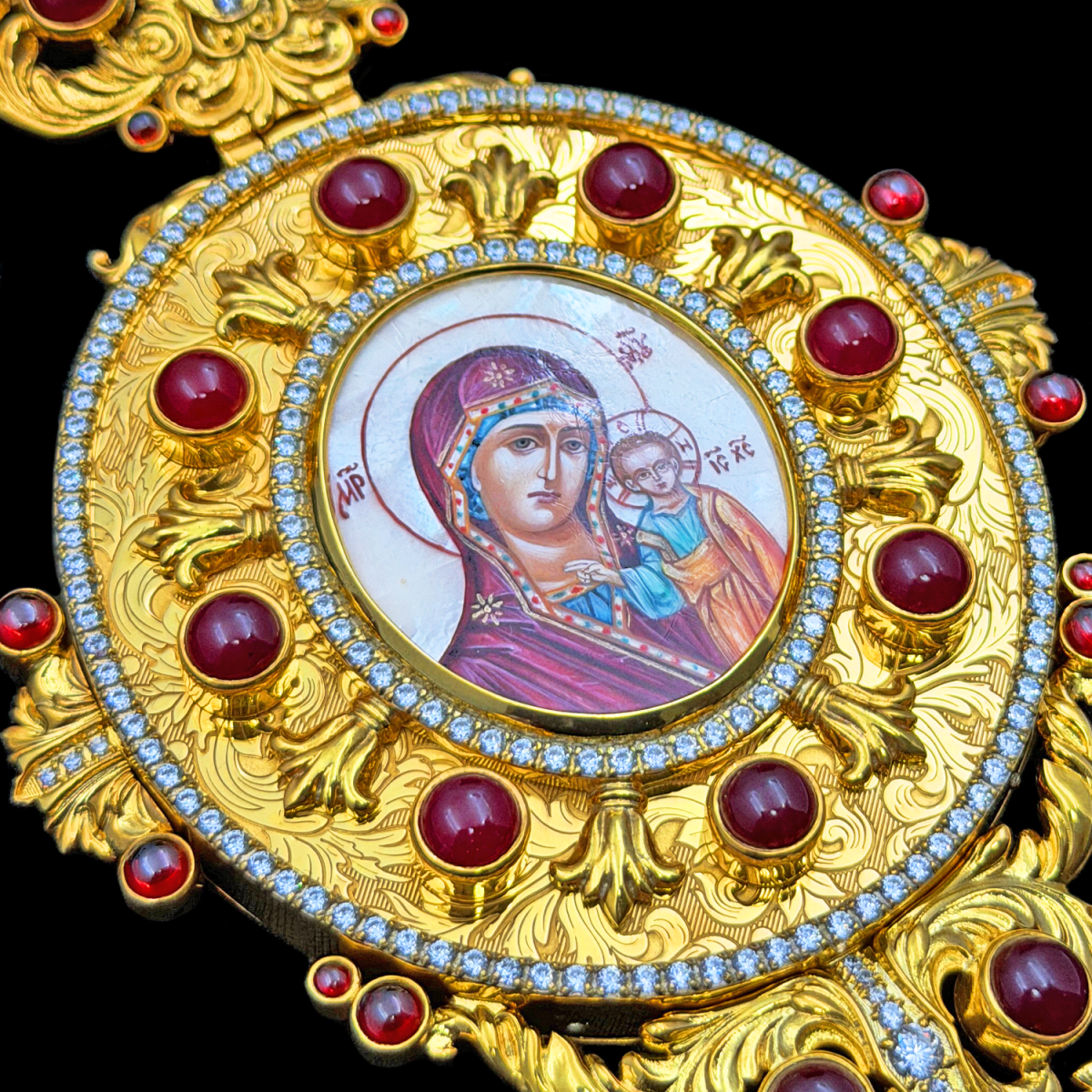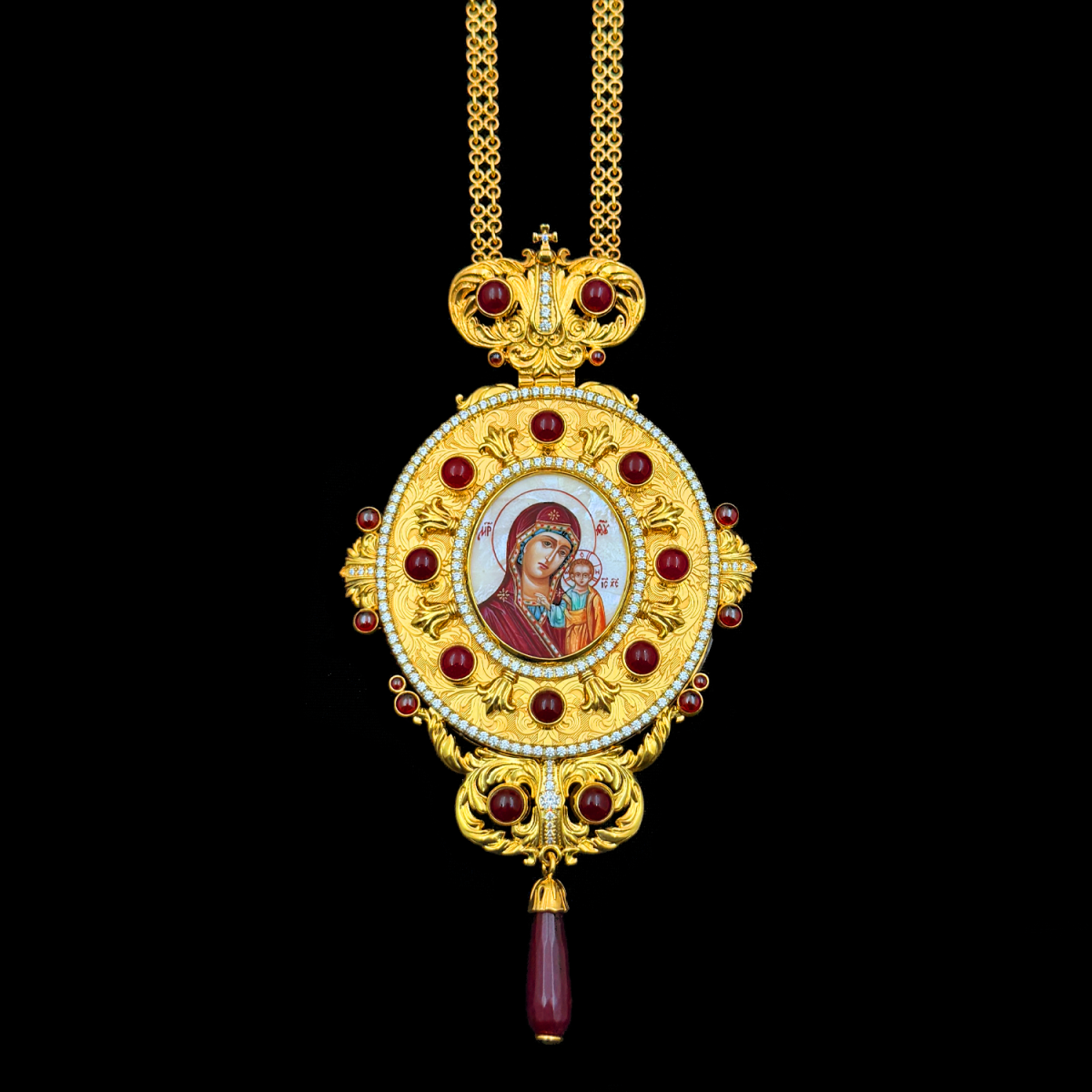 | Вставки | Иконопись на перламутре, халцедон красный, фианит | |