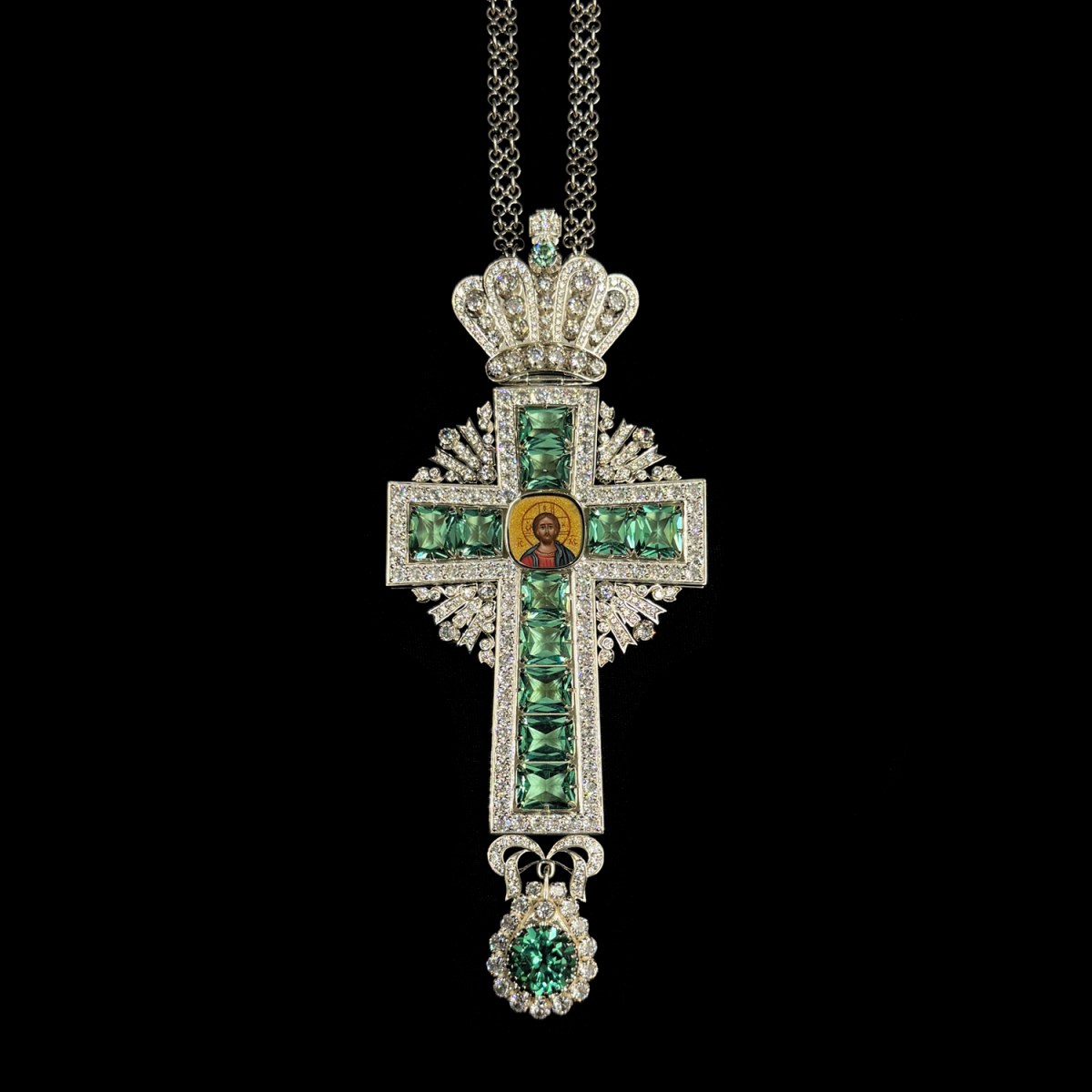 Иконопись на перламутре, ювелирный кристалл, фианиты |